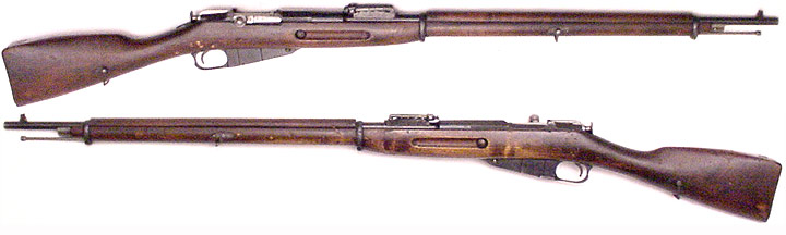 RUSSIAN Model 1891 Mosin-Nagant bolt-action rifle #239964 (7.62x54R), mfg. by Remington in 1917. Very Good condition metal with 75% original bluing and an excellent mirror-bright bore. [SA] marked, matching bolt and receiver (with bold Remington eagles on both barrel-shank and receiver), buttstock has unit-disc hole in right side, wood has considerable handling-marks and dings. PHOTOS . . . $175. C&R SOLD