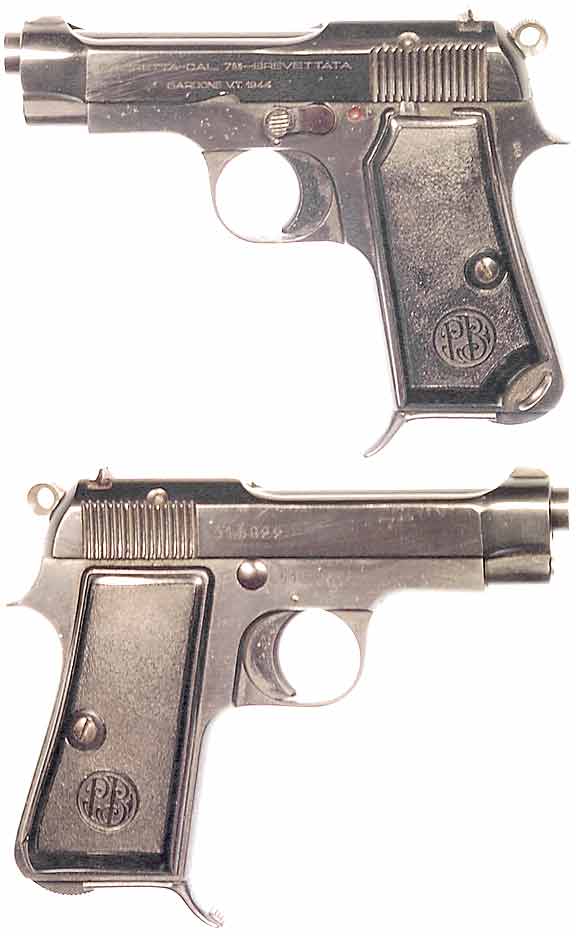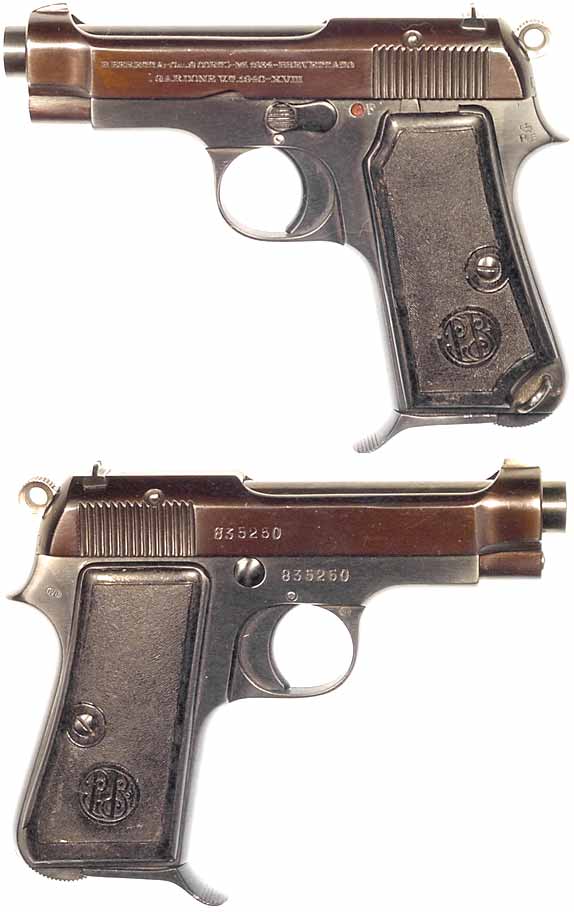 ITALIAN Model 1935 semiautomatic pistol #515822 (.32 ACP) mfg. by Beretta in 1944. All-matching numbers, Excellent condition with 95% high-polish bluing. Excellent mirror bore, with finger-rest 7-round magazine. Not import-marked. PHOTOS . . . $250. C&R