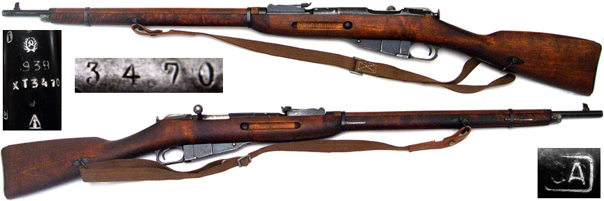 FINN Model 91/30 Mosin-Nagant bolt-action rifle # XT3470 (7.62x54R) barrel mfg. in 1938 by Izhevsk with [SA] property marking on left side of barrel-shank. Excellent condition with 90% original bluing. Bolt-body matching, bore is mostly bright and strong. Finn two-piece stock has very few handling-marks, no cleaning rod. PHOTOS . . . $245. C&R