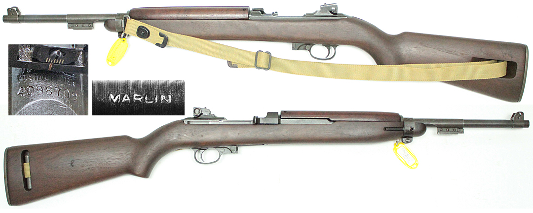 U.S.A. Model M1 Carbine semiautomatic rifle # 4098709 (.30 Carbine) mfg. by National Postal Meter in Late 1943 with undated Marlin barrel. Excellent condition, metal has mostly full Parkerized finish with a mirror bright bore and with 2.0 muzzle-wear. This features a flat-topped bolt, push-button safety, adjustable rear sight and late front band with bayonet-lug. High-wood NPM cartouched walnut stock and handguard has very few dings and handling marks. Includes one 15-round unmarked magazine (only where legal) with web sling and oiler. Not import-marked with CMP certificate of authenticity. PHOTOS . . . $1475. C&R SOLD