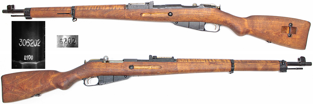 FINN Model 39 Mosin-Nagant bolt-action rifle # 306202 (7.62x54R) barrel mfg. by SAKO in 1970, receiver date ground. Excellent-PLUS condition, with 99% dark bluing with gorgeous mirror-bore and matching bolt-knob. Two-piece postwar (square-jointed) birch stock with very few handling-marks. Includes cleaning-rod. PHOTOS . . . . $1250. C&R SOLD