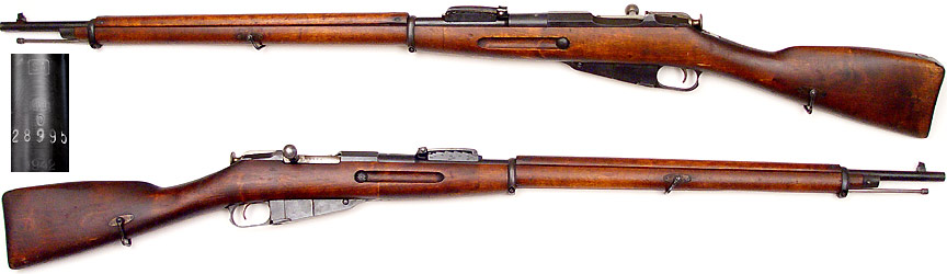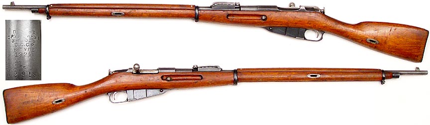 RUSSIAN Model 1891 Mosin-Nagant bolt-action rifle # 29183 (7.62x54R), mfg. by Tula in 1924. Good condition with very little remaining bluing, no matching parts, bore is rough but has strong rifling, rifle is functional. Buttstock and handguard sound with some of the usual handling-marks. No cleaning-rod. A very late issue 1891 rifle. PHOTOS . . . . $125. C&R SOLD