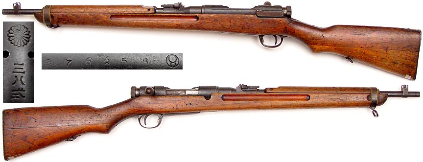 JAPANESE Type 38 Arisaka bolt-action carbine Series 5, # 76258 (6.5x50) mfg. at Nagoya in c.1937. Very Good condition with full original bluing, no matching numbers, intact ground mum. Dark but strong bore, buttstock sporterized by cutting down forend just in front of front barrel-band. Wood has quite a few of the expected handling-marks, no import-marks. PHOTO . . . $225. C&R SOLD