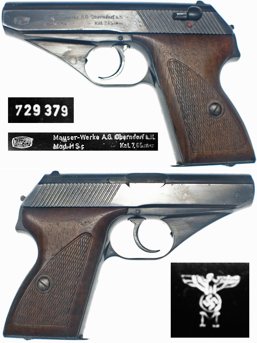 Model HSc (Variation 2) semiautomatic pistol # 729379 (.32 ACP), mfg. by Mauser,