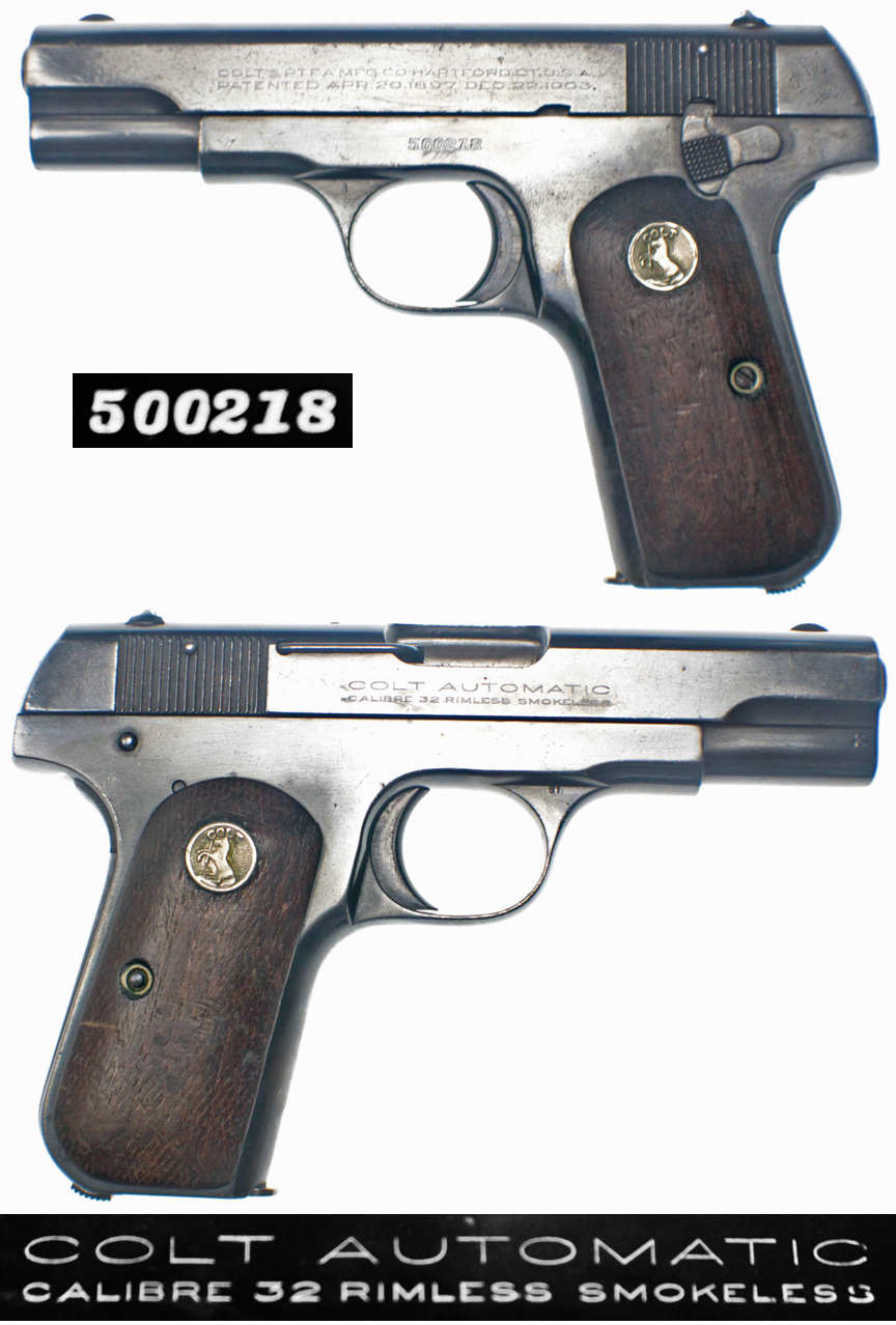 Model 1903 Pocket Hammerless semiautomatic pistol # 500218 (.32 ACP), mfg. by