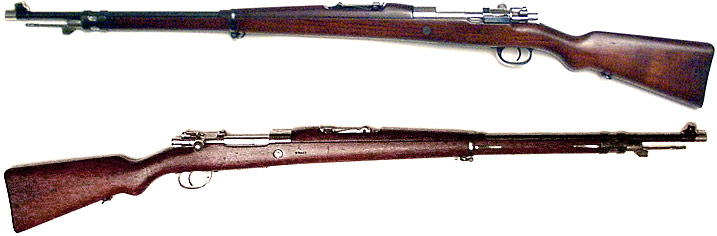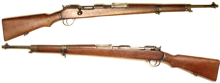 ARGENTINE Model 1909 Mauser bolt-action rifle #B3413 (7.65x53) mfg. by DWM in c. 1910. UNISSUED, with nearly 100% original bluing (receiver in the white as is proper for these). Bore is mirror-perfect, Argentine crest is extremely bold and beautiful. All-matching numbers (including wood and cleaning-rod). Gorgeous streaked reddish-walnut stock that has o9nly been lightly sanded with clear cartouche on right side, a few scuffs and dents from contact with adjacent rifles during normal storage & handling through the years. This rifle very simply looks NEW rather than 86+ years old, of the absolute highest prewar workmanship and quality, with muzzle-cap. Not import-marked, UNIMPROVABLE! PHOTOS . . . $725. C&R