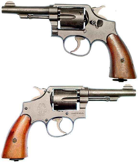 U.S.A. "Victory Model" revolver #V347027 (.38 Special), manufactured by Smith & Wesson in 1944 for U.S. Government (U.S. PROPERTY G.H.D. on top-strap). Excellent condition with 99% original Parkerized finish and a near-perfect mirror bore, case-colors still vivid on hammer and trigger. All-matching numbers, really sharp and clear markings throughout, excellent walnut grips. Likely the finest example of this pistol I have ever encountered, not import-marked. PHOTOS . . . $450. C&R