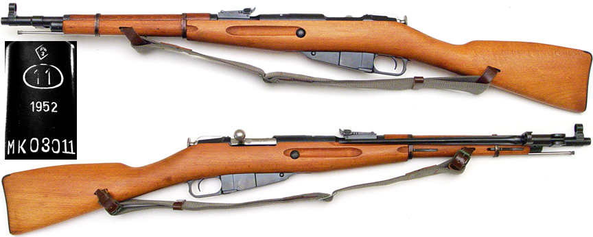 POLISH Model 44 Mosin-Nagant bolt-action rifle # MK03011 (7.62x54R) mfg. by Radom in 1952. Excellent-PLUS, literally UNISSUED condition with 100+% bluing on all metal parts and a mirror-bright perfect bore. All-matching numbers, wood nearly mar-free. PHOTOS . . . $425. C&R SOLD