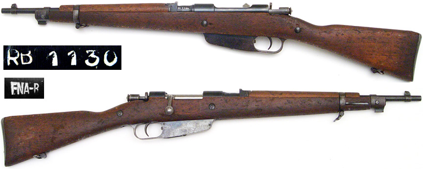 ITALIAN Model 38 Mannlicher-Carcano Truppi-Speciale bolt-action carbine # RB1130 (7.92x57) mfg. by FNA Brescia undated and converted to 8mm single-shot training rifle with S-marked chamber. Very Good condition, bore is very bright and strong, stock has a few scuffs and dings but no cracks or anything major, missing cleaning rod. PHOTOS . . . $200. C&R SOLD