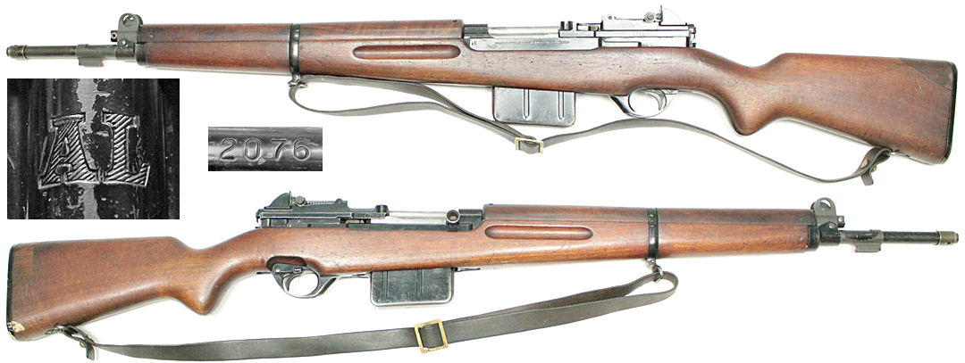 LUXEMBOURG Model FN-49 Saive semiautomatic rifle # 2076 (.30-06) mfg. by Fabrique National in c.1950. Very Good or better condition with 70% original chipping black-enamel finish, all-matching numbers, bore is mirror-bright and virtually perfect, AL stamped above chamber. Walnut stock and handguard has qu8ite a few handling-marks from its experiences over the last nearly half-century, with arsenal repairs near buttplate. Only 6,000 FN-49 rifles were made for Luxembourg, and .30-06 is the most desirable chambering in this model rifle. PHOTO . . . $1675. C&R SOLD