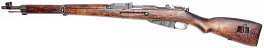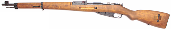 FINN Model P-27 Mosin-Nagant bolt-action rifle # 13948 (7.62x54R) mfg. by AV1 in 1927 with receiver "in the white" (unblued). Excellent or better condition with most bluing intact (except for barrel, which was not originally blued). Bore is very bright with pronounced rifling, has NOT been counterbored at muzzle. Bolt body numbered 13948 (matching). Includes cleaning-rod, one-piece Russian stock has some scrapes and gouges but no cracks. (rated R9). PHOTOS . . . $950.* C&R