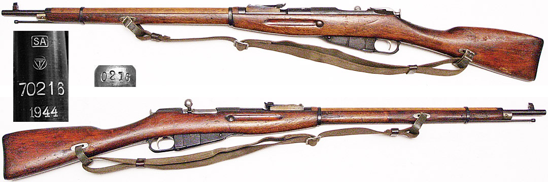 FINN Model 91/30 Mosin-Nagant bolt-action rifle # 70216 (7.62x54R) mfg. by Tikka in 1944. Excellent-PLUS condition with full bluing on all metal parts with a round receiver and and a beautiful mirror-bore. Has stacked blade front sight, 0216 stamped on bolt knob (matching). Russian stock has quite a few handling marks but is sound with no cracks, handguard is like new. Includes cleaning rod and Soviet cloth military sling. PHOTOS . . . $425. C&R SOLD
