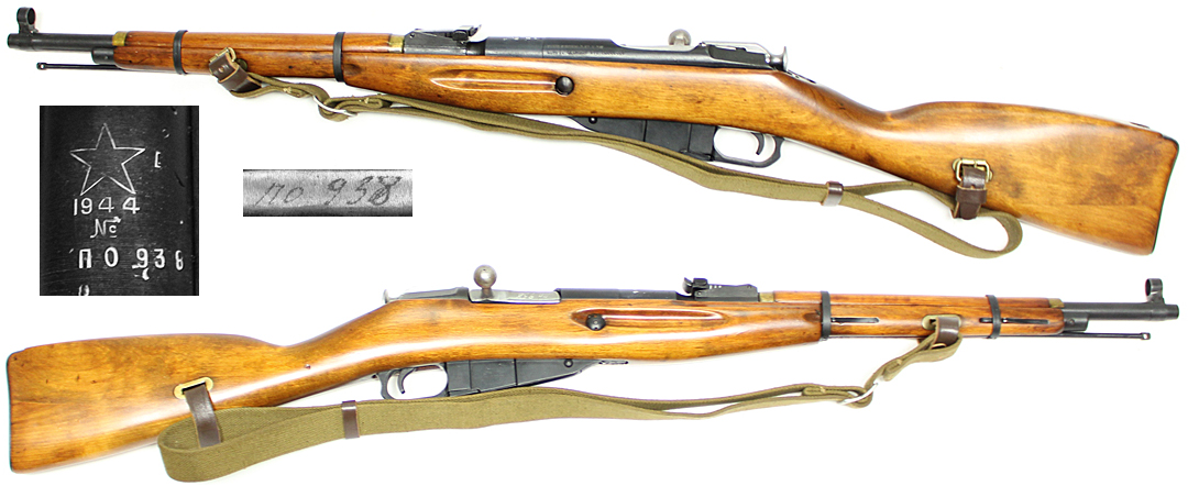 SOVIET Model 38 Mosin-Nagant bolt-action carbine # PO938 (7.62x54R) mfg. by Tula in 1944. Excellent refurbished condition with 95+% bluing on all metal parts and a mostly-bright bore (has been counterbored at muzzle to increase accuracy). All matching serial numbers (bolt electro penciled), with pretty decent M44 buttstock. Includes cleaning rod and correct web sling. Extremely attractive. PHOTOS . . . $525. C&R SOLD
