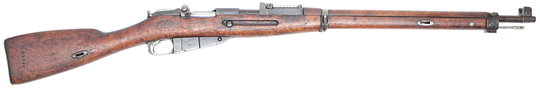FINN Model P-27 Mosin-Nagant bolt-action rifle # 13948 (7.62x54R) mfg. by AV1 in 1927 with receiver "in the white" (unblued). Excellent or better condition with most bluing intact (except for barrel, which was not originally blued). Bore is very bright with pronounced rifling, has NOT been counterbored at muzzle. Bolt body numbered 13948 (matching). Includes cleaning-rod, one-piece Russian stock has some scrapes and gouges but no cracks. (rated R9). PHOTOS . . . $950.* C&R
